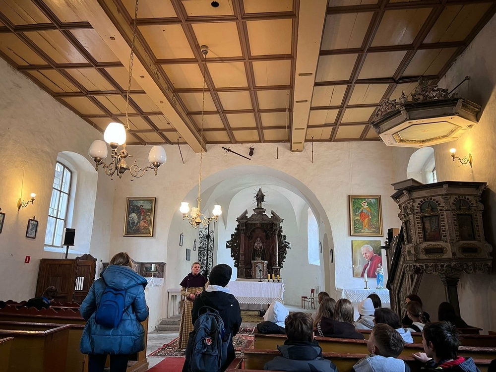 Klasa 7a wraz z opiekunami: panią Wioletą Kocik, panią Edytą Supernak oraz księdzem Piotrem Spalińskim, dnia 28 października 2025 roku, w ramach projektu „Poznaj Dolny Śląsk”, zwiedziła Zamek we Wleniu oraz okoliczne atrakcje. Wyprawa rozpoczęła się od wizyty w Szkole Podstawowej im. św. Jadwigi Śląskiej, skąd uczniowie, razem z przewodnikiem i rówieśnikami z tej szkoły, wyruszyli na dwugodzinną wycieczkę na Górę Zamkową. W trakcie wędrówki zwiedzili jeden z najstarszych kościołów na Dolnym Śląsku.