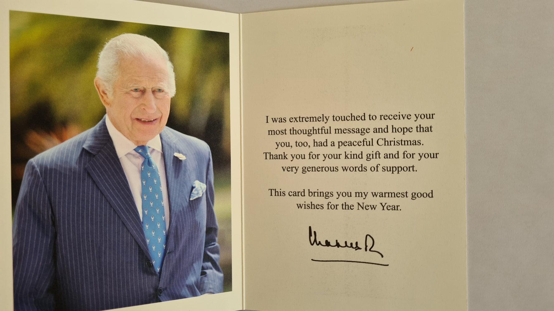 Na zamieszczonych zdjęciach można zobaczyć najnowszą kartkę od króla Karola III, a także kartki otrzymane od członków rodziny królewskiej w poprzednich latach.