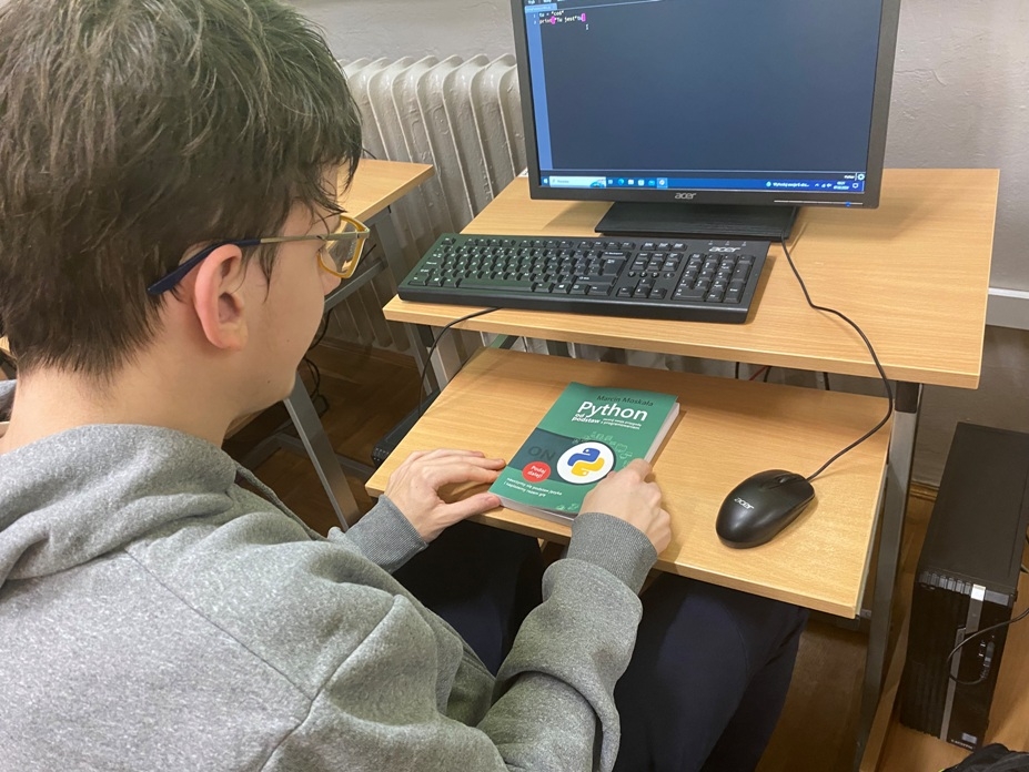Książki zostały pozyskane przez nauczycielkę po nawiązaniu kontaktu z autorem podręcznika p. Marcinem Moskałą pod koniec zeszłego roku szkolnego. Po opisaniu przez bibliotekę szkolną książki znajdują się obecnie w sali informatycznej i służą uczniom do rozwijania pasji programowania w Python. Uczniowie klas siódmych i ósmych pisali swoje programy w python: